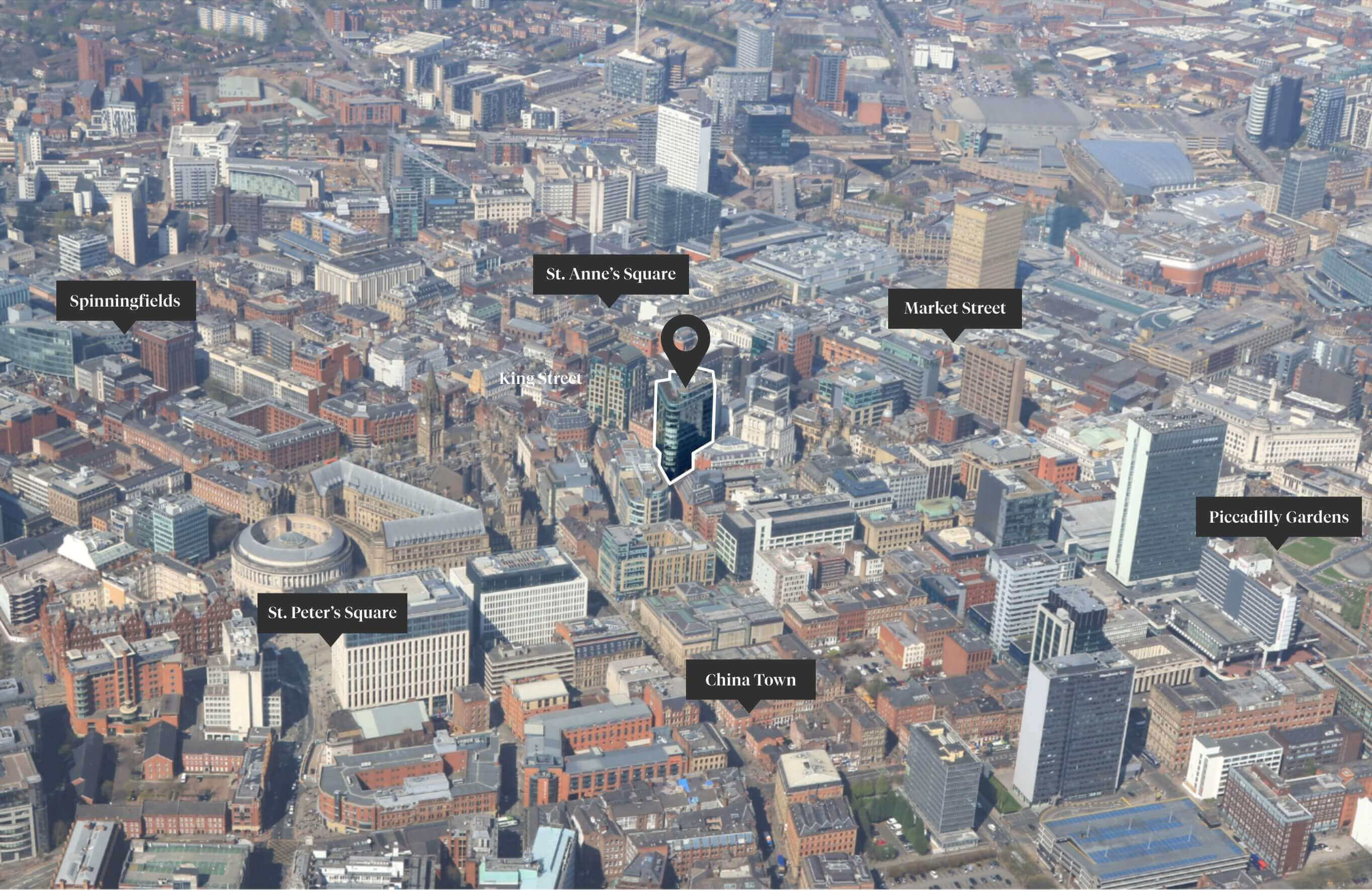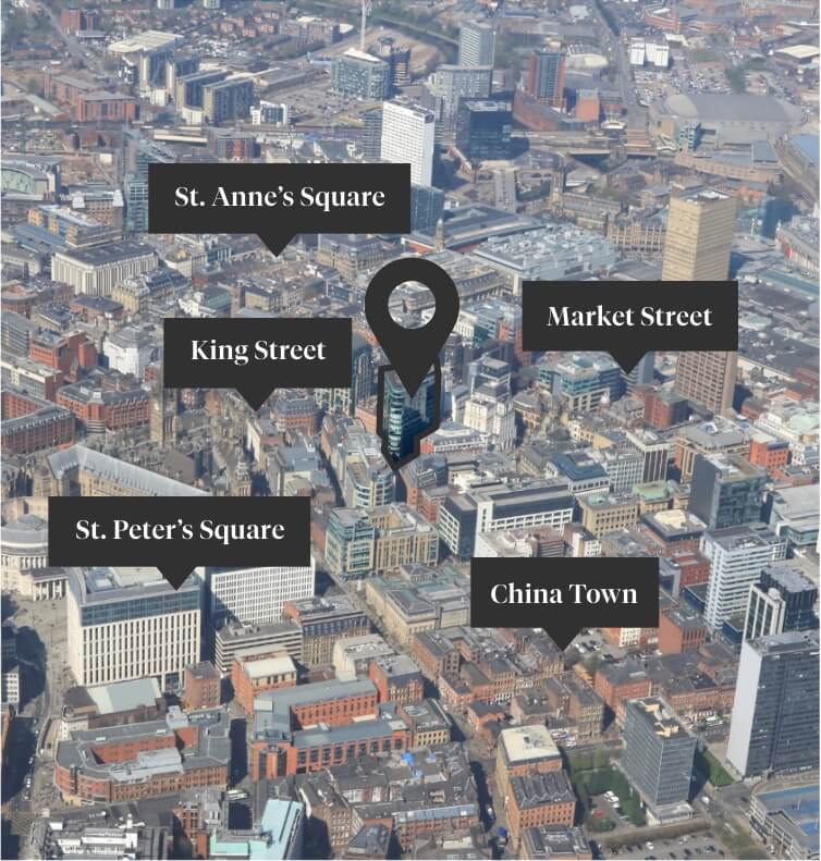 You’re just moments from St. Peter’s Square, the central hub of the region-wide Metrolink tram system, and less than 10 minutes’ walk from Manchester Piccadilly rail station. There are three high-speed trains to London Euston every hour, with a journey time of just two hours and five minutes.
